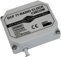 The radio clock C28COM was designed for operation in combination with RS232 interfaces. Besides the antenna and the DCF77 receiver, the module includes a microcontroller for decoding the DCF77 telegram. C28COM provides a Meinberg Standard Telegram that includes information on date, time and status of the clock via it's transmission line. An integrated bicolor LED signals the synchronous state of the clock and the demodulated time marks. C28COM is powered by control lines of the RS232 interface, an external power supply is not necessary.Characteristics