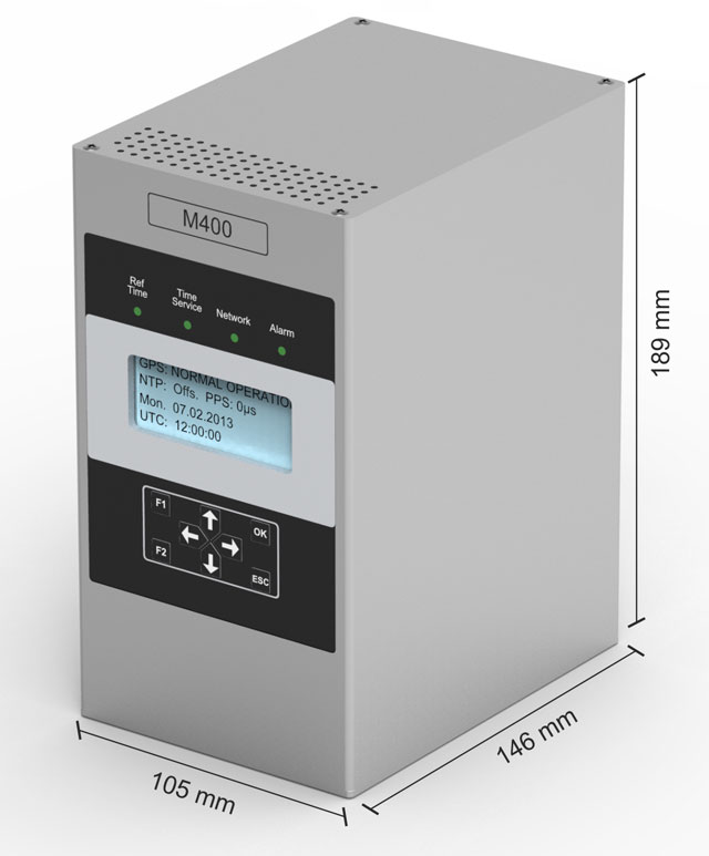 The LANTIME M400 is available with an integral receiver as well as an IRIG timecode reader and can be customized with a lot of different options to deliver exactly the feature set that is required for a certain application/environment.