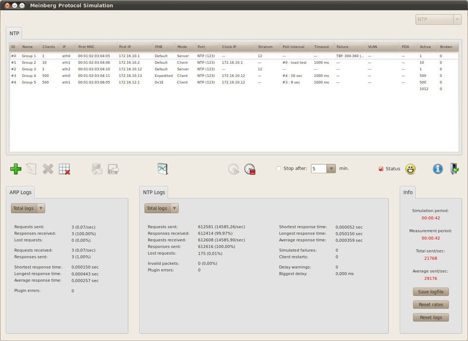 With this configuration, the user creates NTP clients in load test mode. This means that the NTP client will send a new request instantly after receiving a reply to the past request. With this configuration, you can stress your NTP server with several thousand NTP requests per second..