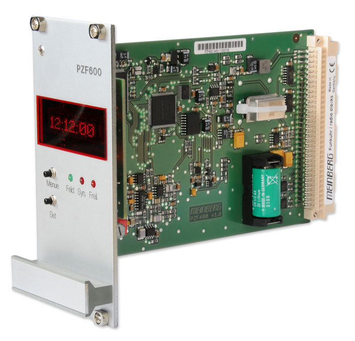 By evaluating the pseudo-random sequence (PZF), which is part of the DCF77 signal in addition to the amplitude modulation, the PZF600 is capable to reproduce a time pattern in the range of microseconds. This allows generation of high precision pulses and an accurate adjustment of the main oscillator of the system. Besides various standard frequencies, the board provides a programmable frequency output. Additional features of PZF600 are pulses per second (PPS) and per minute (PPM), four RS232 interfaces and IRIG timecode outputs.Characteristics