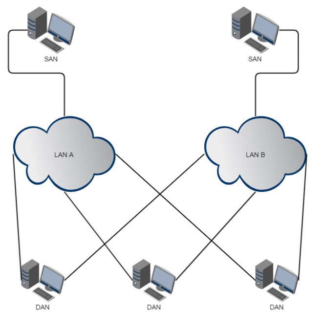 PRP stands for Parallel Redundancy Protocol and is defined in the standard IEC 62439-3 since 2010. PRP is Layer-2 based and has been developed for computer networks which are in need of a reliable solution regarding high availability and operational functionality. A LANTIME with two or more interfaces, running firmware 6.22.001 or higher, has the ability to act as a DAN ("Dual Attached Node" - A device which is connected to both redundant networks).Configuring the LANTIME