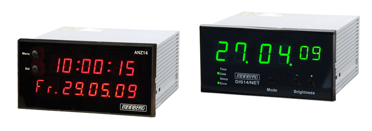 The ANZ14 is a time & date display that derives its time & date either from the German DCF77 time service, a serial time string, or NTP server, and displays it on a high-contrast red LED display. The ANZ14 can be constructed to be powered either by an AC or a DC power source. The DIS14 is a custom version of the ANZ14 that was engineered specifically at the request of certain customers for a green LED display version of the ANZ14.
