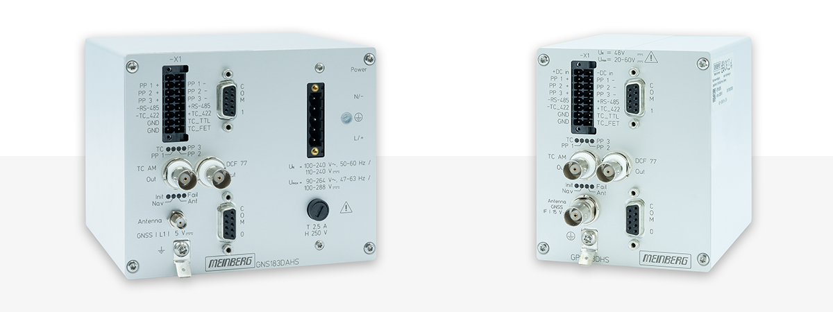 Comprising the GPS183/DAHS, the GPS183/DHS, the GNS183/DAHS, and the GNS183/DHS, each of these models features Meinberg's industry-leading GNSS receiver and reference clock technology for reliable nanosecond-level accuracy and excellent holdover performance. The GPS183 and GNS183 railmounted clocks are the successors to Meinberg's trusted GPS165 and GNS165 clocks respectively, incorporating all of the technological advancements introduced in Meinberg's latest reference clock technology, as well as enhanced surge protection in accordance with IEC 61000-4-5 Level 4.