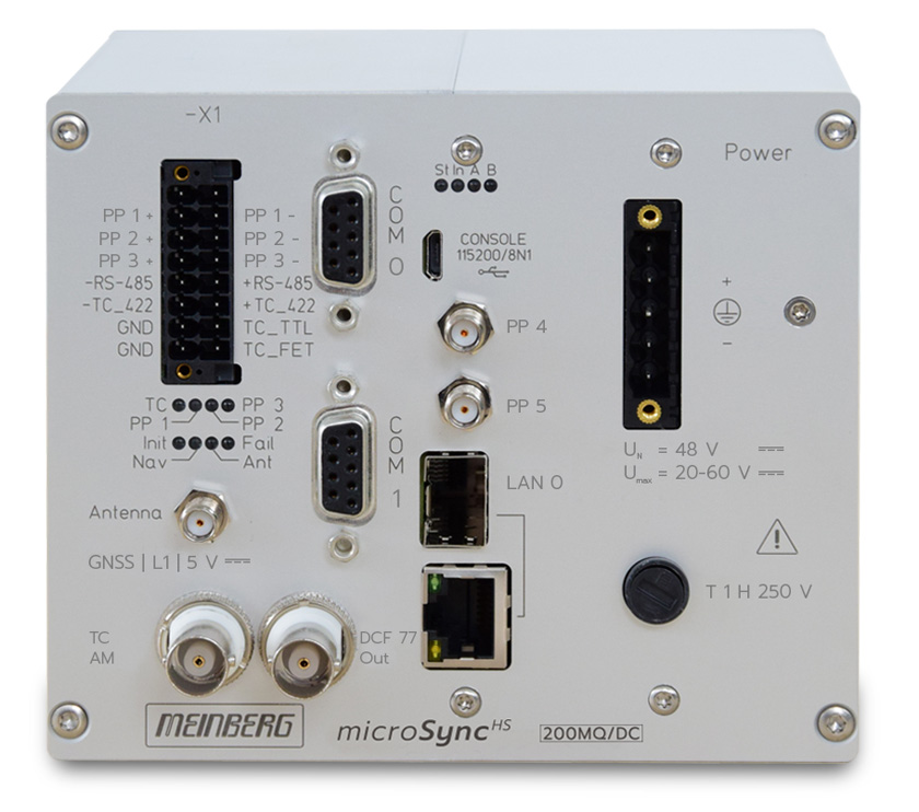 The microSync-Series offers optical or electrical network connectivity by using SFP modules. There are a selection of sync input possibilities available, for example the 72-channel Multi GNSS Receiver for GPS, Galileo, GLONASS and BeiDou.
