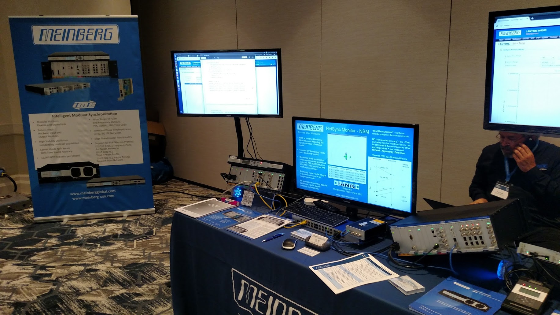 “The WSTS crowd showed considerable interest in the NSM, and our demonstration was the perfect opportunity to show the product off and talk one-on-one with potential users,” adds Street. “During the course of the event, we were able to show and describe the modular design and flexible composition of our entire line of IMS products, from the LANTIME M4000 all the way down to an LANTIME M500 and the SyncBox N2X.” Street added that the graphical demonstration of each PTP slave sync performance over time and a short explanation of the key data points gathered by the monitoring system were particularly popular features.