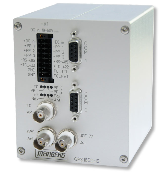 - Meinberg GPS Antenna/Converter Unit connected with up to 300m of standard coaxial cable RG58