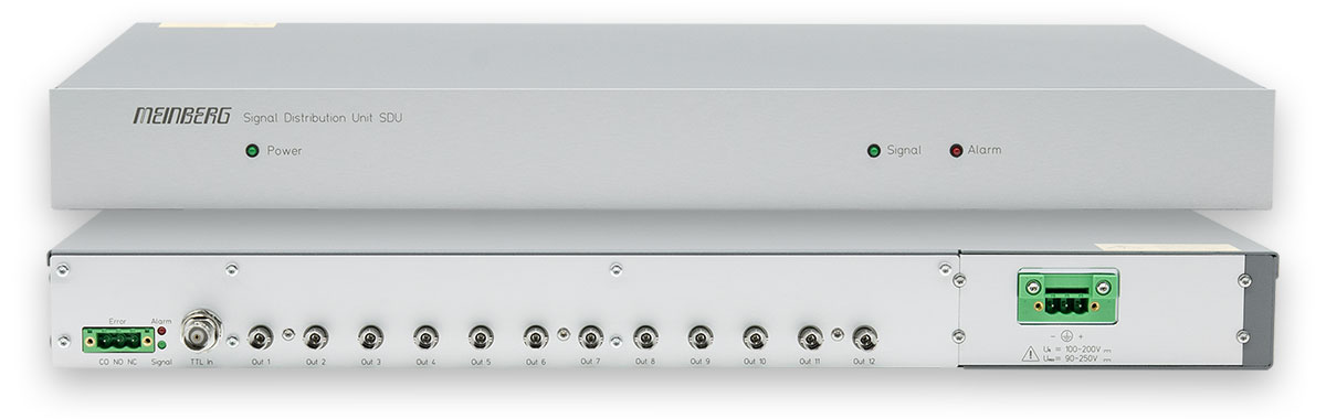 The SDU / FO base chassis equipped with one or two distribution modules is ready to amplify and distribute TTL-level signals such as 1PPS, 10MHz and unmodulated IRIG time code. An option is available for a TTL signal input instead of the FO input.