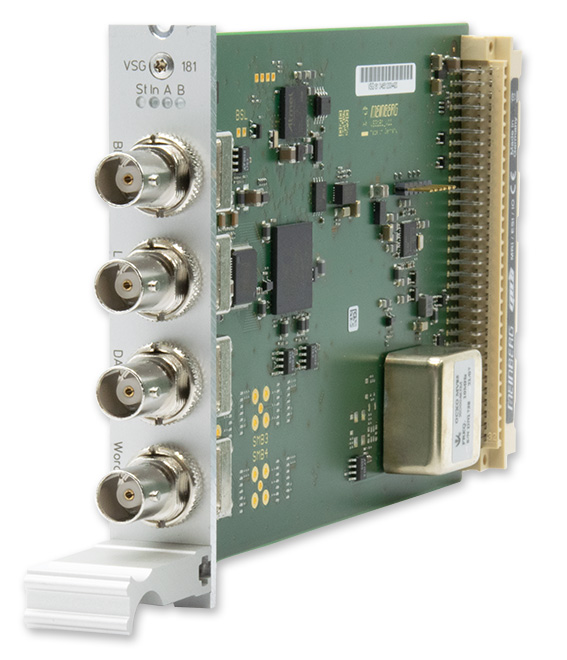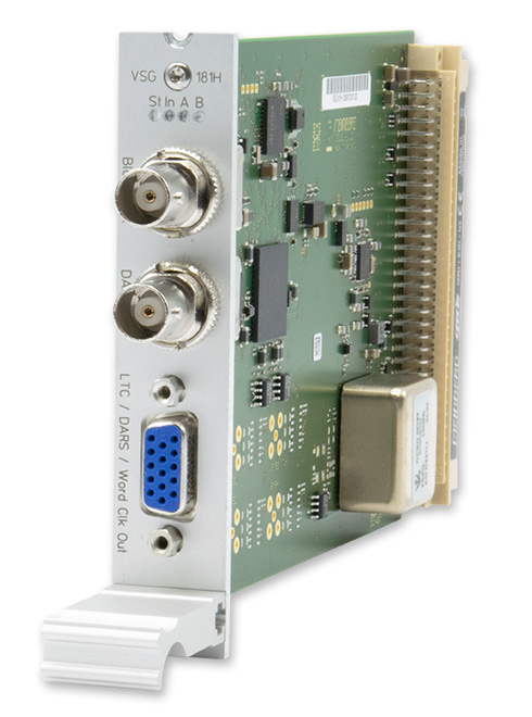 Both the IMS-VSG181 and IMS-VSG181H are synchronized by means of the upstream reference of your IMS system. The VSG modules are also available with special on-board crystal oscillators to maintain the integrity of the reference signals, even if the upstream reference signal is temporarily lost or disrupted for any reason.