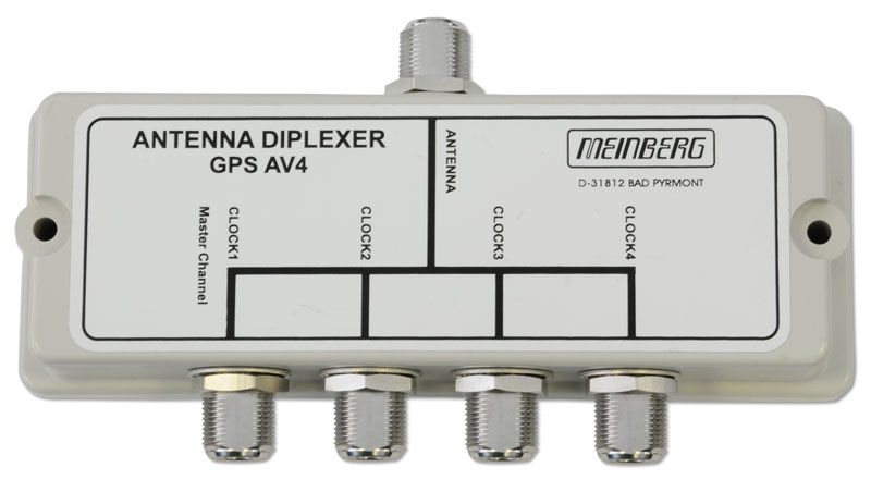 The GPSAV4 redistributes a signal from a Meinberg GPS antenna/converter unit to four outputs, which in turn are connected to up to four Meinberg GPS receivers. The signal distributor is fitted with an internal amplifier to minimize signal attenuation.