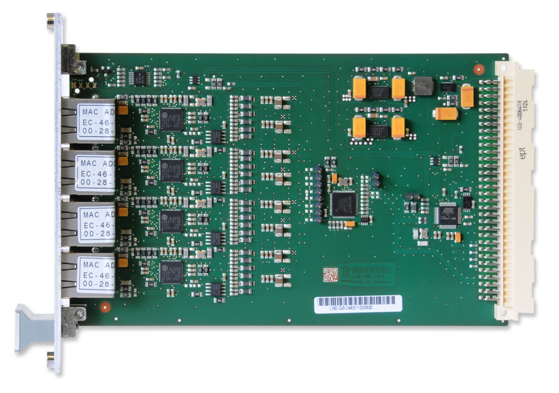 The module LNE extends a LANTIME NTP time server (3U models) with four additional network connections. LANTIME models in 1U cases can be ordered with two additional network ports.