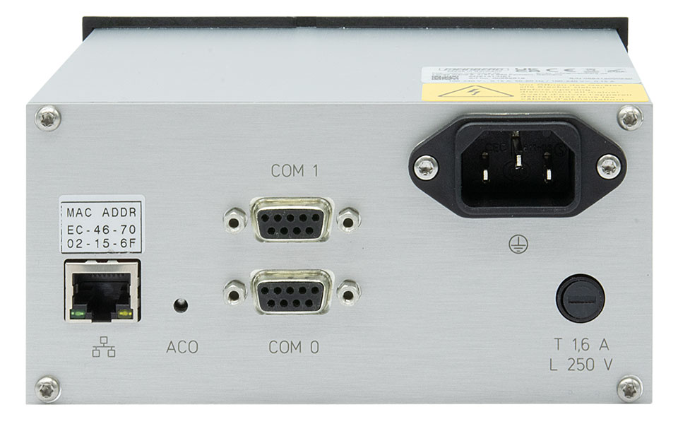 | Electrical Connectors | Two 9-pin SubD female connectors (COM0 / COM1) RJ-45 Network connector (ANZ141/NET only) Antenna connection via BNC female (ANZ141/DCF only) IEC mains plug (AC power supply) 3-pin MSTB (DC power supply) |