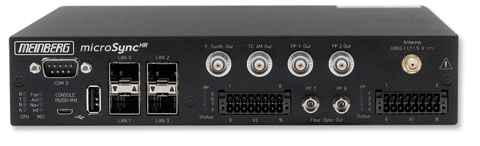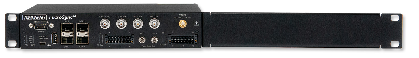 All microSyncHR variants offer key features like multiple programmable output signals (two over fiber optical ST connectors), four Gigabit Ethernet interfaces and the ability to synchronize both NTP and PTP devices.