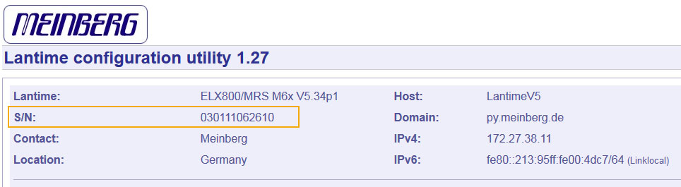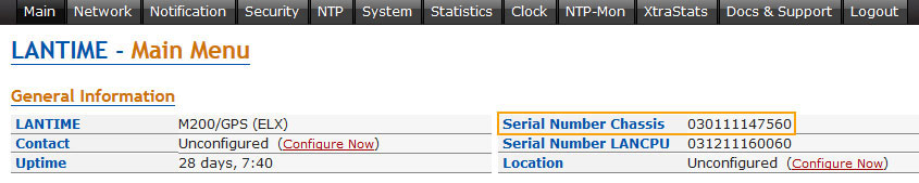 Option 2: You can also find the Serial Number on the Webinterface of your LANTIME.
